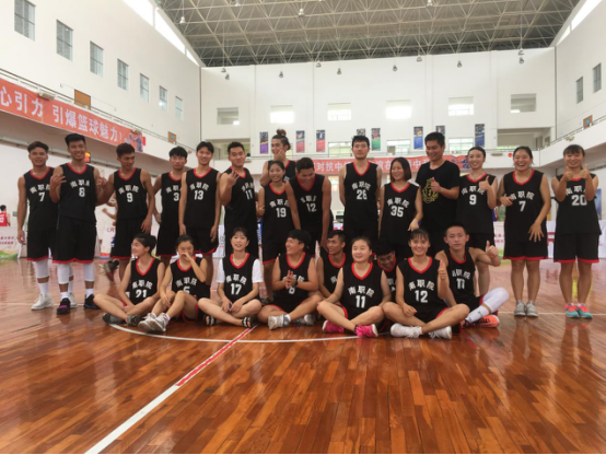 南昌职业学院男篮、女篮全体队员与领队、教练合影